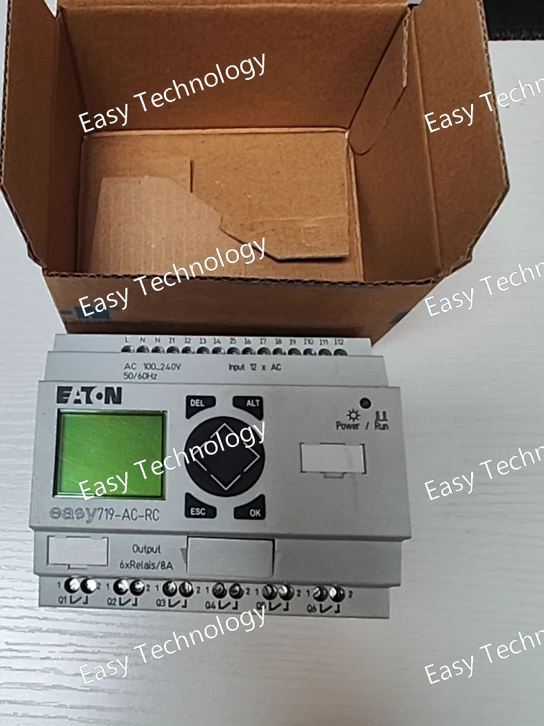 Technical Parameters Parameter Category Specification Product Model EASY719-AC-RC Product Line EASY700 Device Type Programmable Logic Relay (PLR) / Smart Relay Supply Voltage 100-240 V AC (85-264 V AC, 50/60 Hz) Power Consumption Typically 15 W (including loads) Core Processor 32-bit microcontroller User Program Memory 2,000 function blocks (non-volatile) Data Memory 512 flags (non-volatile) Real-Time Clock (RTC) Integrated (buffered) Digital Inputs 12 x Digital Inputs • 24 V DC (sinking/sourcing) • 4 of them can be used as analog inputs (0-10 V, 0/4-20 mA) or high-speed counters (5 kHz) Digital Outputs 8 x Relay Outputs • Switching Capacity: 250 V AC / 30 V DC Max. • 8 A (at 250 V AC Resistive) • 5 A (at 250 V AC Inductive, cos φ=0.4) Analog Inputs 4 x Analog Inputs (shared with 4 digital inputs) • Configurable: 0 - 10 V, 0/4 - 20 mA • Resolution: 10 bit High-Speed Counters 4 x High-Speed Counters (shared with 4 digital inputs) • Frequency: up to 5 kHz Display & Operation Integrated Color Graphic Display (RC) • High-resolution TFT color screen • 8 function keys with customizable labels Programming Interface Integrated EASY-PC interface (via RJ12 connector) & USB port Communication • EASY-LINK: For networking up to 12 EASY devices. • Ethernet (optional module): For integration into plant networks and remote access. • PC Connection: Via USB or RJ12. Programming Software Eaton EASY-SOFT (Version 7 or higher recommended for full functionality) Protection Rating Front panel: IP65 (when mounted) Housing: IP20 Mounting DIN rail mounting (35 mm) Ambient Temperature -25 °C to +55 °C (Operation) -40 °C to +70 °C (Storage) Dimensions (H x W x D) Approx. 126 x 90 x 64 mm