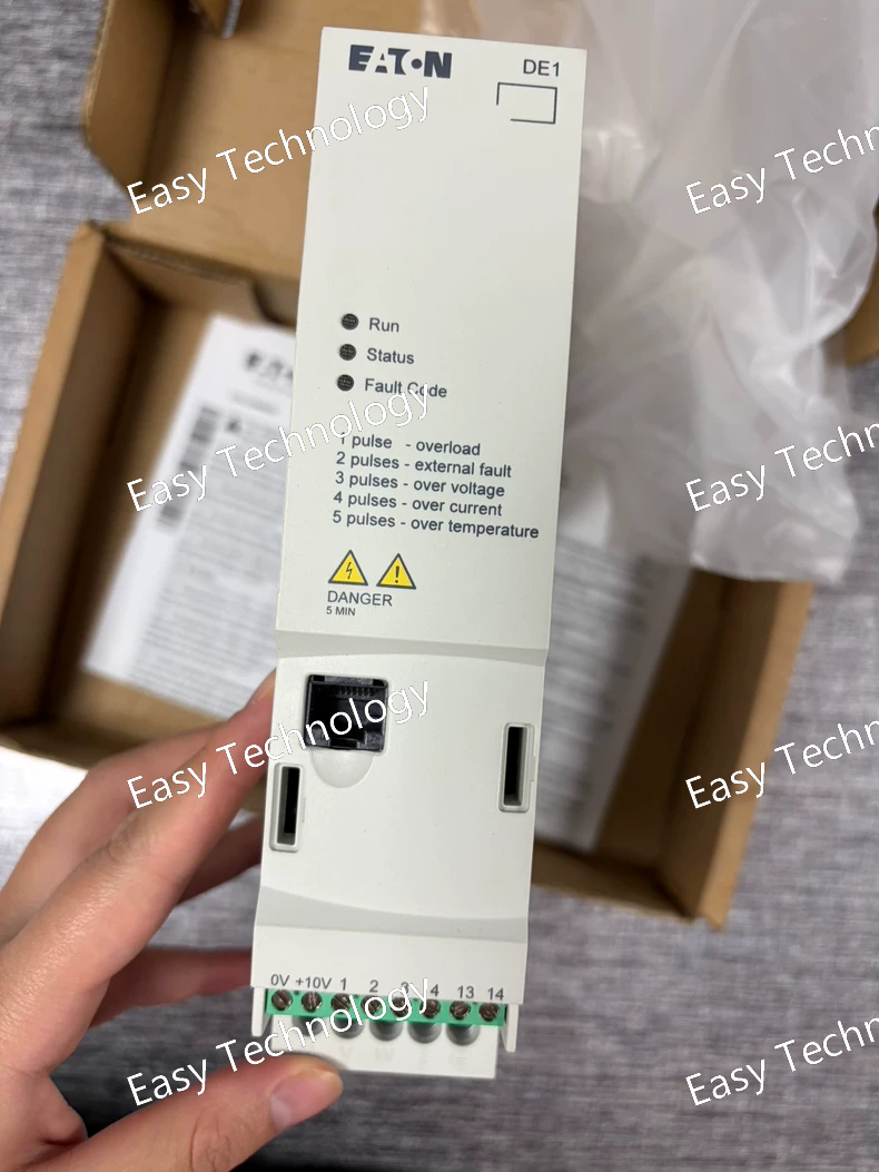 Technical Parameters Parameter Category Specification / Value Brand Eaton Product Line DF1 (DuraDrive F1) Product Model DF1-34075NN-C20CX1 Product Type AC Variable Frequency Drive (VFD) Rated Output Power 0.75 kW Horsepower (HP) 1 HP Output Current 2.1 A Input Voltage 3-Phase, 380 - 480 V AC (±10%) Input Frequency 50/60 Hz (±5%) Output Voltage 0 - Input Voltage Output Frequency 0 - 599 Hz Key Feature Integrated DC Choke Control Methods Sensorless Vector Control, V/F Control Enclosure Rating IP20 / NEMA Type 1 (Open Type) Keypad Removable with potentiometer Communication Protocols Modbus RTU (RS-485) Mounting Panel Mount Approvals / Certifications CE, cULus, RoHS