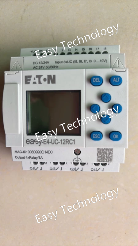 Technical Parameters Power Supply Voltage: 24 V DC Digital Inputs: 12 inputs at 24 V DC Relay Outputs: 6 relay outputs Relay Output Rating: 8 A thermal per relay Rated Operational Voltage (Relay Contacts): Up to 250 V AC Heat Dissipation: Approximately 4 W Protection & Isolation Short-Circuit Protection: Requires external protection (e.g., B16 circuit breaker or 8 A slow-blow fuse) Isolation: Safe isolation between input circuits and relay contacts, compliant with industrial standards Wiring & Connections Wiring Capacity: Solid wire: 0.2–4.0 mm² (AWG 22–12) Flexible wire: 0.2–2.5 mm² Connection Method: Screw terminals Communication: easyLINK expansion interface Mechanical Specifications Mounting Type: 35 mm DIN rail Dimensions: Width: approx. 3.5 in Height: approx. 3 in Depth: approx. 4.5 in Weight: approx. 0.39 kg (0.86 lb) Environmental Specifications Operating Temperature: –25 °C to +55 °C Standards & Certifications: CE, UL, CSA, EN industrial control standards