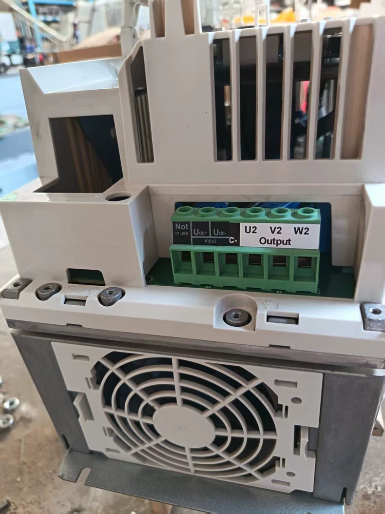 Technical Specifications: Power Rating: 37 kW (50 HP) Input Voltage: 3-phase 380-480V AC (±10%), 50/60 Hz Output Current: 65 A Overload Capacity: 150% for 60 seconds Control Technology: DTC (Direct Torque Control) Frequency Range: 0-500 Hz Efficiency: >98% Key Features: Advanced Control Capabilities: Sensorless vector control Automatic motor adaptation Torque control mode Flying start function Application-Specific Functions: Built-in PID controller Pump and fan control curves Multiple preset macros Custom application programming Protection Systems: Motor thermal protection Short circuit protection Ground fault detection Input phase monitoring Standard Interfaces: Control Terminals: 2 analog inputs (0-10V/4-20mA) 3 digital inputs 2 relay outputs 1 analog output (0/4-20mA) Communication: RS485 (Modbus RTU standard) Optional fieldbus adapters available Physical Characteristics: Enclosure: IP21 (open chassis) Dimensions: 350 × 482 × 227 mm (W × H × D) Weight: 18.5 kg Cooling: Forced air cooling Ambient Temperature: 0-40°C (32-104°F) without derating