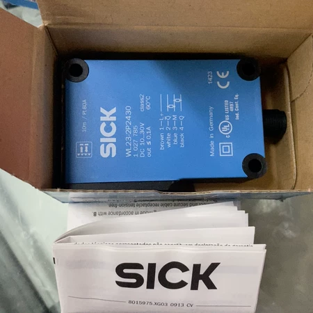 The SICK WL23-2P2430 is a compact retro-reflective photoelectric sensor featuring a dual-lens system and visible red LED illumination. It offers reliable detection across ranges from 0.1 m to 10 m (typically 0.3 m to 7 m with a PL80A reflector) and delivers complementary PNP light/dark switching output. Housed in a robust ABS enclosure with IP67 protection, it includes built-in circuit protections and connects via a 4-pin M12 male connector, making it ideal for industrial automation tasks requiring flexible, dependable object sensing.