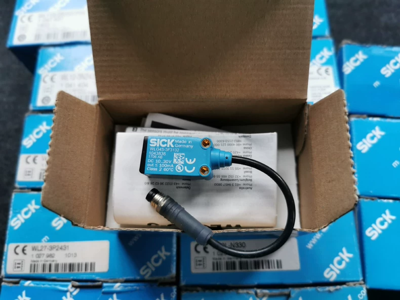 The SICK WL9L-N330 is a compact retro-reflective photoelectric sensor with autocollimation optics and a visible red PinPoint LED. It provides reliable object detection up to 3.5 m, featuring a fast response time, stable switching performance, and a durable IP67-rated housing for industrial applications.