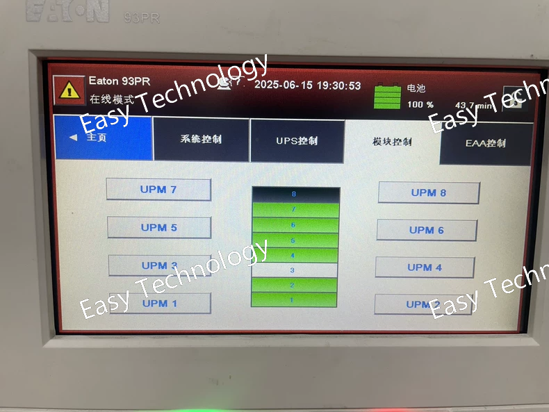 Technical Parameters Category Specification Product Model 9PX 8000 Product Family Eaton 9PX Series UPS Topology Double Conversion Online Rated Capacity 8000VA/7200W Input Characteristics - Voltage Range 200-240V AC - Frequency Range 50/60 Hz (auto-sensing) - Input Power Factor >0.99 - Input Connection Hardwired (L16-30P or similar) - Maximum Current 40A Output Characteristics - Voltage 200-240V AC - Frequency 50/60 Hz (±0.5% synchronous) - Waveform Pure Sine Wave - Efficiency Up to 97% (in online mode) - Output Connections Hardwired or multiple outlet strips - Transfer Time 0 ms Battery System - Battery Type Sealed Lead-Acid (SLA) VRLA - Internal Battery Standard configuration - External Battery Supports multiple EBM units - Typical Runtime Configurable with external battery packs - Recharge Time 2-4 hours to 90% capacity - Battery Life 3-5 years (typical) Physical Specifications - Form Factor Tower/Rack-mountable (6U) - Dimensions 265 × 482 × 810 mm (H×W×D) - Weight 78 kg (with internal batteries) Environmental - Operating Temperature 0°C to 40°C - Operating Humidity 0-95% non-condensing - Audible Noise <55 dBA at 1 meter - Operating Altitude 0-3000 meters Communications - Interfaces USB, Serial, Network (standard) - Management Eaton Intelligent Power Manager - Display Full-color graphical LCD