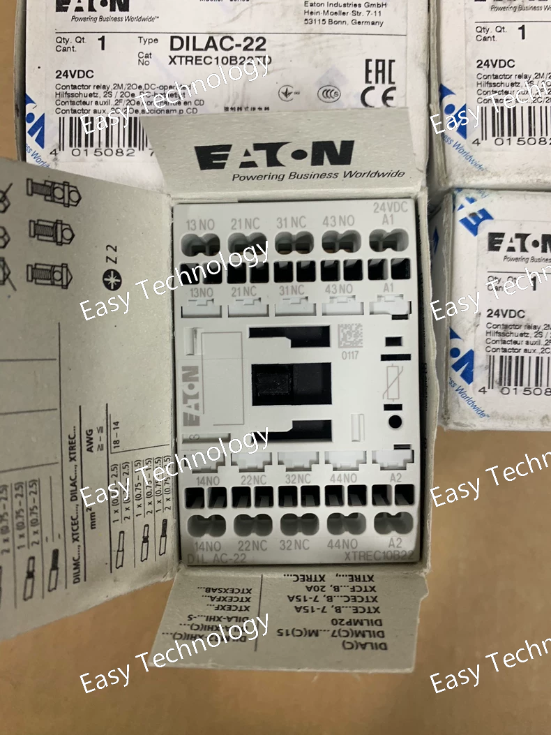 Technical Parameters Parameter Specification Model DILA-31 Rated Operational Current (Ie) 32 A (at AC-3, 400V) Motor Power Rating (at 400V AC) 15 kW Rated Operational Voltage (Ue) 690 V AC Control Supply Voltage Varies by specific model* Number of Poles 3 main poles Auxiliary Contacts Typically 2 convertible contacts (NO/NC) Utilization Category AC-3 (squirrel cage motors) Mechanical Durability 10-30 million operations Electrical Durability 1.5-3 million operations (at AC-3) Mounting DIN Rail (35mm) or Panel Mount Terminal Type Screw clamp Protection Degree IP00 (terminal), IP20 (front) Standards & Approvals IEC/EN 60947-4-1, UL 508, CE, cULus