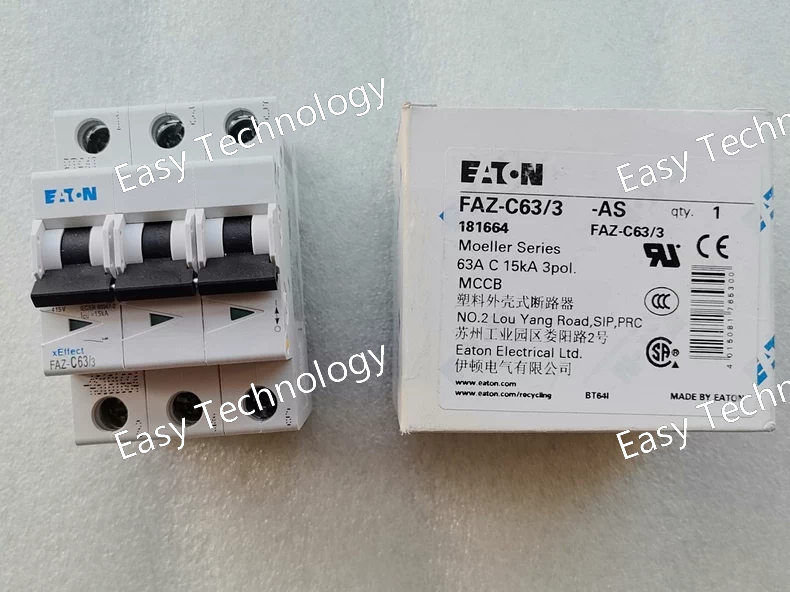 Key Parameters Category Description / Value Product Line Eaton FAZ (DIN Fuses) Rated Current (Iₙ) 63 A Fuse Characteristic Time-Delay (Slow-Blow, Type C) Rated Voltage (Uₑ) 500 V AC (as indicated by "/3" size code) Fuse Size/Dimension 14 x 51 mm (DIN 43620) Breaking Capacity High, typically 50 kA or more at 500V AC Standards Compliance IEC 60269-1, UL 248-14 (or equivalent) Fuse Type Cartridge Fuse