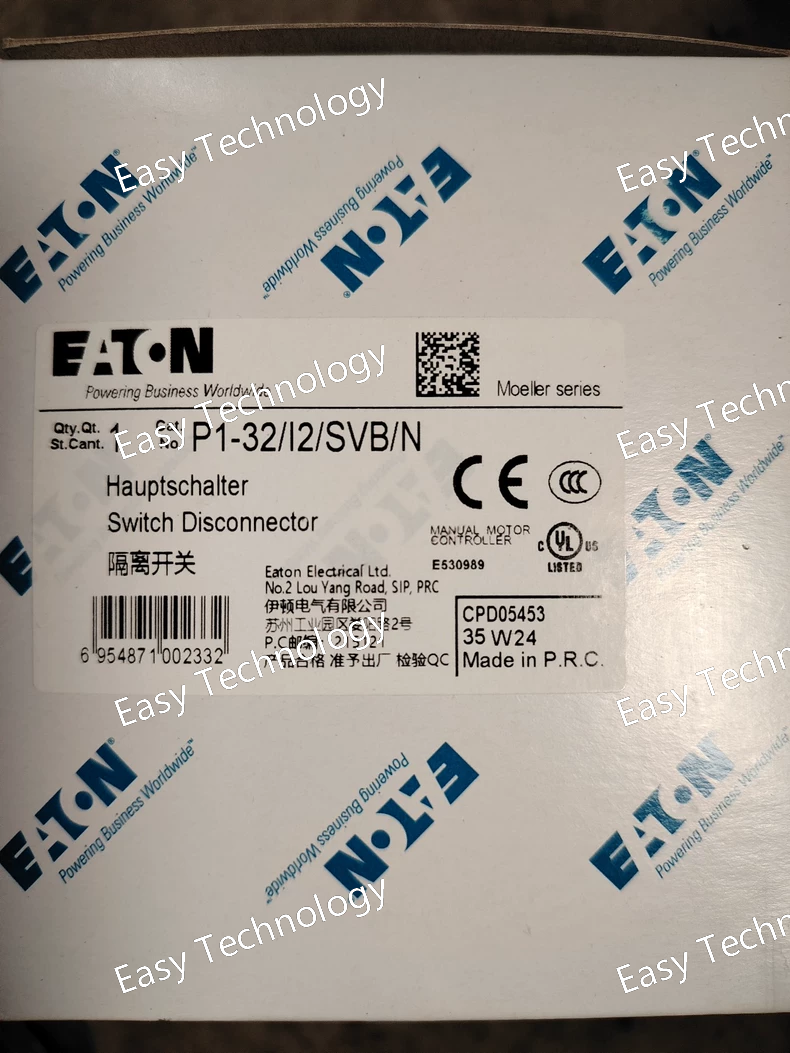 Key Parameters Category Description / Value Product Line Eaton Surge Protection Type / Class Type 1 (Able to withstand partial lightning current) Nominal Discharge Current (In) 32 kA (8/20 μs) Max. Discharge Current (Imax) Higher than In, e.g., 60 kA, 80 kA, or 100 kA (Must be verified from datasheet). Voltage Protection Level (Up) A specific value, e.g., ≤ 2.5 kV (Must be verified from datasheet). Rated Voltage For 3-phase + N systems, e.g., 230/400V AC. Protection Mode L-PE (As indicated by "I2" code, for 3-phase systems) Neutral Connection Included (As indicated by "N") Standards Compliance IEC 61643-11 Status Indication Typically includes a visual indicator to show operational status. Mounting Designed for mounting on 35 mm top-hat rail (DIN rail).
