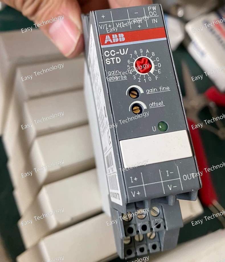 Technical Specifications / Parameters Parameter Specification Manufacturer Order Code 1SVR040000R01700 Catalogue Type CC-U/STD Brand / Series ABB CR-U Series (Universal Monitoring Relays) Device Type Universal Monitoring Relay (Switching Amplifier) with 2 Adjustable Setpoints Input Signal Type DC Voltage or True RMS AC Voltage. Input Voltage Range Typically 0...10V DC or 0...500V AC (selectable or via different models). Input Impedance High impedance (>100kΩ for voltage inputs) to avoid loading the signal source. Setpoint Adjustment Via two front-panel potentiometers for independent adjustment of upper and lower switching thresholds. Monitoring Function Configurable as a window comparator (output active when signal is inside a set range) or outside a range comparator. This provides hysteresis to prevent output chattering. Output Relay 1 Changeover (CO) Contact (SPDT: 1 NO + 1 NC) • Contact Rating: Typically 6A / 250V AC (resistive load). Output Logic Configurable (e.g., relay energized when condition is met, or de-energized). Power Supply Separate auxiliary supply, typically 24...240V AC/DC (wide-range). Response Time Typically < 500ms. Status Indication LEDs for Power, Input Signal Present, and Output Status. Mounting DIN Rail Mounting (35mm). Module Width 22.5 mm (1 module width, compact). Operating Temperature -25°C to +55°C. Front Protection Degree IP40. Standards & Approvals IEC/EN 60255, UL 508, CSA C22.2 No. 14, CE, cULus. Typical Applications • Level monitoring using a potentiometric sensor (e.g., in tanks). • Pressure or flow switch using a 4-20mA/0-10V transmitter (with external resistor). • Speed monitoring using a tachogenerator. • Over/under-voltage monitoring of DC bus or battery banks. • General-purpose alarm annunciator for any analog signal.