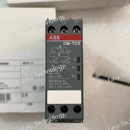 Technical Specifications / Parameters Parameter Specification Manufacturer Order Code 1SVR040010R0000 Catalogue Type CC-U/STDR Brand / Series ABB CR-U Series (Universal Monitoring Relays) Device Type Universal Resistance Monitoring Relay Monitoring Function Monitors the ohmic resistance (R) of a two-wire loop connected to its input terminals. Measurement Principle Applies a constant DC measuring current and measures the resulting voltage drop to calculate resistance. Resistance Measurement Range Typically from a few ohms (Ω) up to several megaohms (MΩ). Specific ranges (e.g., 0-10kΩ, 0-1MΩ) are selectable via front switches or DIPs. 必须核实具体型号范围。 Number of Setpoints Two independent adjustable setpoints (High and Low), typically via potentiometers. Setpoint Logic Configurable to trigger when resistance is above a high limit, below a low limit, or inside/outside a window defined by the two limits. Output Relay 1 Changeover (CO) Contact (SPDT: 1 NO + 1 NC) • Contact Rating: Typically 6A / 250V AC (resistive load). Power Supply (Auxiliary) 24...240V AC/DC (wide-range, for relay electronics). Measuring Voltage/Current Uses a low, safe DC voltage/current for measurement to avoid influencing the monitored system (e.g., < 10V DC). Status Indication LEDs for Power, Alarm/Trip, and sometimes Measurement Active. Hysteresis Adjustable or fixed, to prevent output chatter near the setpoint. Mounting DIN Rail Mounting (35mm). Module Width 22.5 mm (1 module width). Operating Temperature -25°C to +55°C. Front Protection Degree IP40. Standards & Approvals IEC/EN 60255, UL 508, CSA C22.2 No. 14, CE, cULus. Typical Applications • Conductivity-based liquid level detection in tanks (probe resistance changes when immersed). • Moisture or humidity detection (with resistive humidity sensors). • Monitoring of heating elements for open circuit (infinite resistance) or degradation. • Ground electrode or bonding strap continuity checking. • Simple insulation monitoring of low-voltage circuits (e.g., detecting coolant leakage into a motor winding).