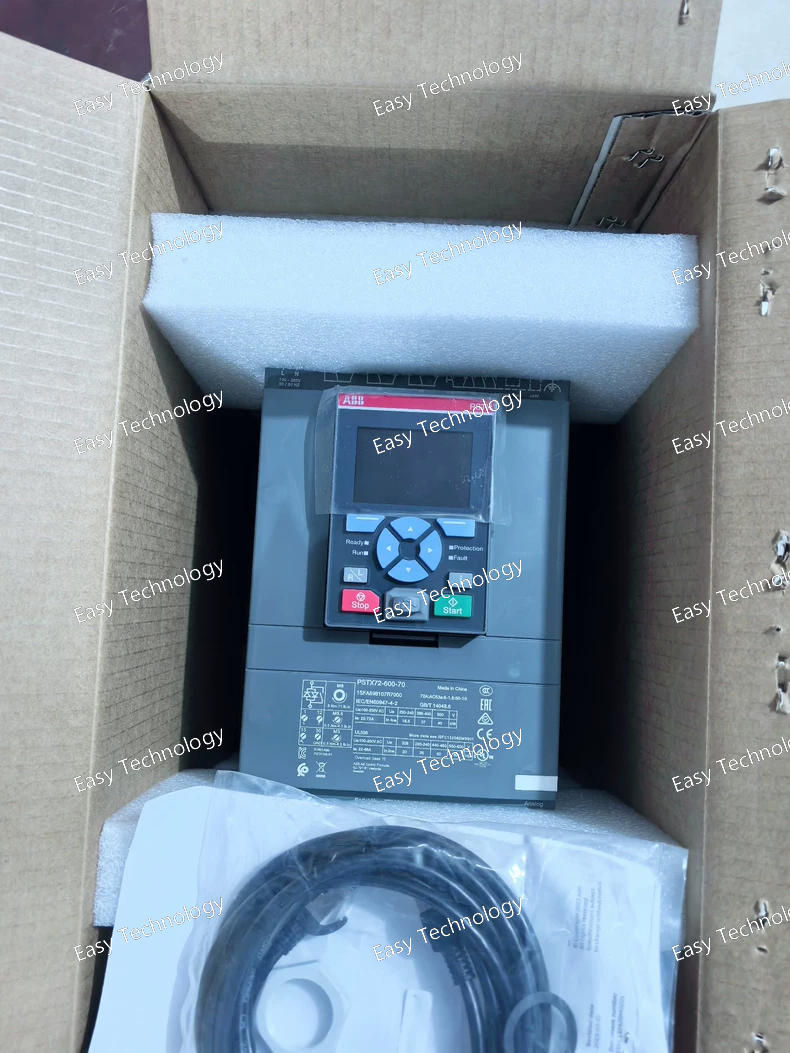 Technical Specifications Parameter Specification Product Code PSTX570-600-70 Series ABB PSTX Medium Voltage Soft Starters Rated Voltage 3300 V / 6000 V (selectable) Rated Current 570 A (continuous at 40°C) Starting Current Adjustable, typically 200% - 500% of motor Full Load Current (FLC) Motor Power Range Approx. 3000 - 5000 kW (dependent on voltage, motor power factor, and efficiency) Control Supply Voltage 110-120V AC or 220-240V AC, 50/60 Hz Starting Time Adjustable from 5 to 120 seconds Stopping Time Adjustable soft-stop (optional, 5 to 120 seconds) Cooling Method Forced air cooling (integrated high-capacity fans) Enclosure IP00 / Open Type (for installation in a customer/contractor-supplied floor-standing or wall-mounted cabinet) Ambient Temperature 0°C to +40°C (32°F to 104°F) for full rating; up to +50°C (122°F) with derating Altitude Up to 1000 m (3280 ft) without derating Standards & Approvals IEC, UL, CSA, CE; compliant with IEC 60947-4-2