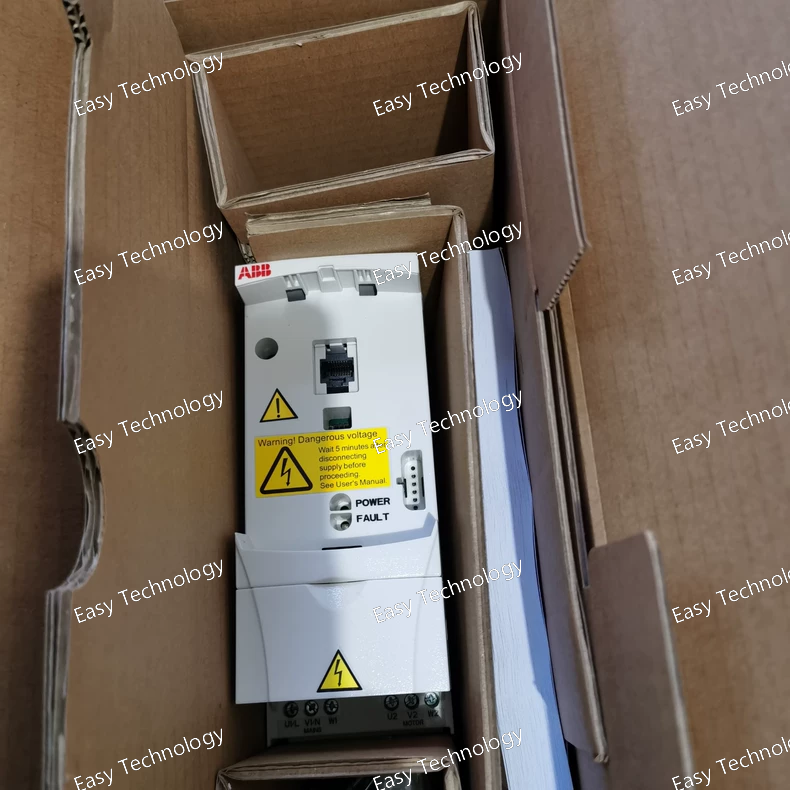 Specifications Power Characteristics: Input Supply: 200-240V AC, 3-phase, 47-63 Hz Rated Output Current: 1.7 A continuous (at 240V, 40°C ambient) Overload Capability: 110% for 1 minute every 10 minutes Starting Current: Limited to drive rating (soft start capability) Output Frequency Range: 0-500 Hz Carrier Frequency: 1-12 kHz (adjustable to reduce motor noise) Motor Compatibility: Motor Power Ratings: 0.75 kW (1.0 HP) at 200V AC 1.1 kW (1.5 HP) at 240V AC Motor Types: Standard 3-phase asynchronous squirrel-cage motors Maximum Cable Length: 150 m without output filter (shielded cable recommended) Physical & Mechanical Specifications Parameter Specification Enclosure Rating IP21 (indoor use, protection against finger contact and vertically falling water) Dimensions (H×W×D) 190 × 93 × 147 mm (7.5 × 3.7 × 5.8 in) Weight 1.8 kg (4.0 lbs) Cooling Method Natural convection (fanless design) Mounting Wall or chassis mounting (vertical orientation recommended) Ambient Temperature -15°C to +40°C (full rating) 40°C to 50°C (with derating: 1.5% per °C) Storage Temperature -40°C to +70°C Relative Humidity 5-95% (non-condensing) Altitude Up to 1000 m without derating Pollution Degree 2 (normal industrial environment) Control & I/O Capabilities Standard I/O Configuration: Digital Inputs: 3 programmable (24V DC, PNP/NPN selectable) Configurable for start/stop, direction, preset speeds, etc. Digital Output: 1 relay (changeover contact) Rating: 250V AC/30V DC, 2A maximum Configurable for ready, running, fault, alarm signals Analog Input: 1 configurable (software-selectable) 0-10V DC or 0-20 mA (12-bit resolution) Can be used as speed reference or PID feedback Analog Output: 1 programmable (0-20 mA) Can be configured for speed, current, torque, etc. Built-in Potentiometer: Integrated 1 kΩ, 10-turn pot on control panel Control Features: Control Modes: Voltage/Frequency (V/Hz) control with ECO mode Square-law characteristic for fan applications Direct Torque Control (DTC) optionally available Application Macros: ABB Standard (factory default) 3-Wire Control Hand/Auto Control PID Control Torque Control