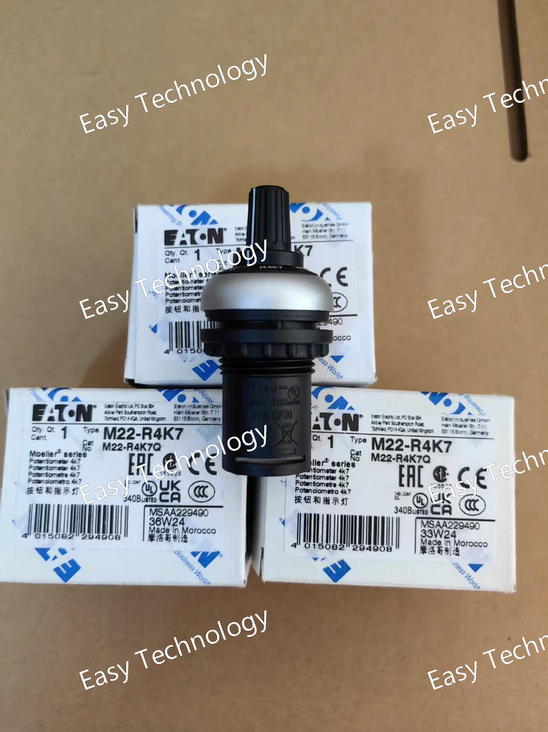 Technical Parameters Parameter Category Description / Value Brand & Series Eaton, M22 Series Model Number M22-R4K7 Sensor Type Inductive Proximity Sensor Housing Material Typically Nickel-plated brass or Stainless Steel Thread Size M22 x 1.5 Connection Type Pre-wired cable (Specific length varies) Integrated Resistor 4.7 kΩ Sensing Distance 5 mm (Standard for M22 inductive sensors) Output Type Analog or Special Configuration Supply Voltage 10-30V DC Protection Degree IP67 Standards Compliance IEC 60947-5-2