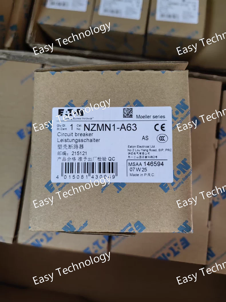 Technical Parameters Parameter Category Description / Value Brand & Series Eaton, NZM Series Model Number NZMN1-A63 Rated Current 63 A (Frame Size) Poles Typically 3-Pole (Pole configuration may vary, confirm with specific order code) Rated Operational Voltage (Ue) Up to 690V AC Rated Insulation Voltage (Ui) 800V AC Trip Unit Type Type A - Adjustable Electronic Trip Unit Protection Functions L - Long-time Delay (Overload) S - Short-time Delay (Short-Circuit) I - Instantaneous (Short-Circuit) Breaking Capacity (Icu) High interrupting capacity (Typically 25 kA to 50 kA depending on specific voltage rating) Standards Compliance IEC 60947-2
