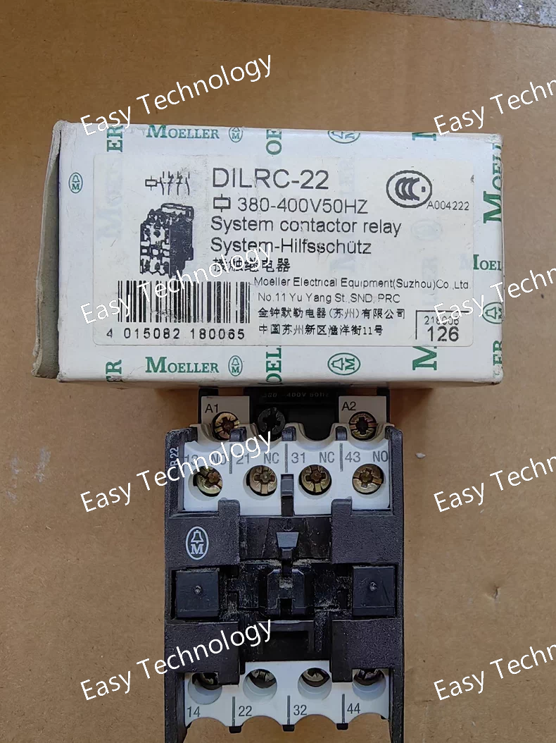 Technical Parameters Parameter Category Description / Value Brand & Series Eaton, DILRC Series Model Number DILRC-22 Rated Operational Current (Ie) 22 A (for AC-1 category, resistive loads) Poles 4-Pole (Typically 4 Normally Open (NO) contacts) Rated Operational Voltage (Ue) Up to 690V AC Control Coil Voltage Available in multiple standard AC and DC voltages (e.g., 24V AC/DC, 110V AC, 230V AC, etc.). The specific voltage is not defined by "22" and must be specified when ordering. Utilization Categories AC-1: Non-inductive or slightly inductive loads AC-15: Control of electromagnetic loads (≤ 720 VA) DC-1: Non-inductive or slightly inductive loads DC-13: Control of electromagnetic loads Mechanical Life ~ 10 - 30 million operations (typical for this series) Electrical Life Varies by utilization category (e.g., ~ 1-3 million operations at rated AC-15 load) Mounting Standard 35mm DIN Rail (EN 60715) Standards Compliance IEC/EN 60947-5-1, UL 508, CSA C22.2 No. 14 Terminal Type Cage Clamp or Screw Clamp