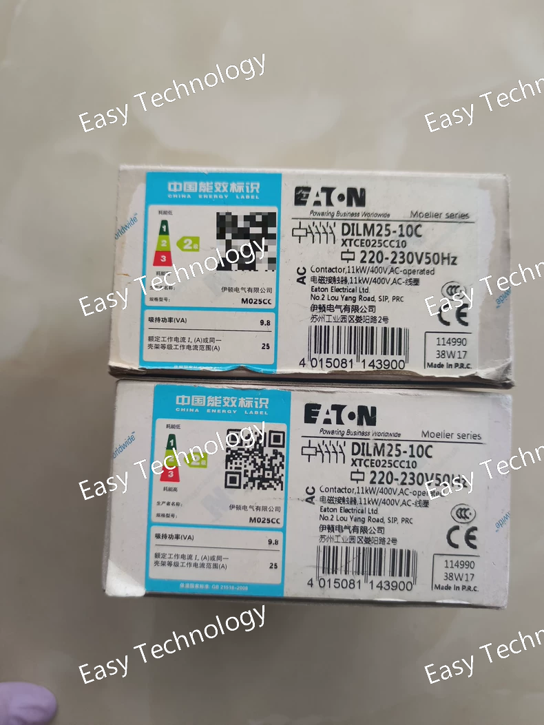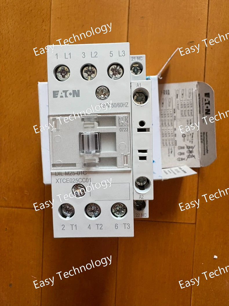 Technical Parameters Parameter Category Description / Value Brand & Series Eaton, DILM Series Model Number DILM25-10C Rated Operational Current (Ie) 25 A at AC-3, 400V Thermal Current (Ith) 25 A Poles (Main Circuit) 3 (Normally Open) Auxiliary Contacts 1 NO (Normally Open) + 1 NC (Normally Closed) - Convertible Rated Operational Voltage (Ue) Up to 690V AC Control Coil Voltage DC operating coil (Specific voltage must be specified when ordering, e.g., 24V DC, 110V DC). Utilization Categories AC-3: Squirrel cage motors: Starting, switching off during running AC-1: Non-inductive or slightly inductive loads Motor Rating (at 400V AC) 11 kW / 15 HP Mechanical Life ~ 15 million operations Electrical Life (AC-3) ~ 1.5 million operations Mounting Standard 35mm DIN Rail (EN 60715) or screw mounting Standards Compliance IEC/EN 60947-4-1, UL 508, CSA C22.2 No. 14 Terminal Type Cage Clamp / Screw Clamp