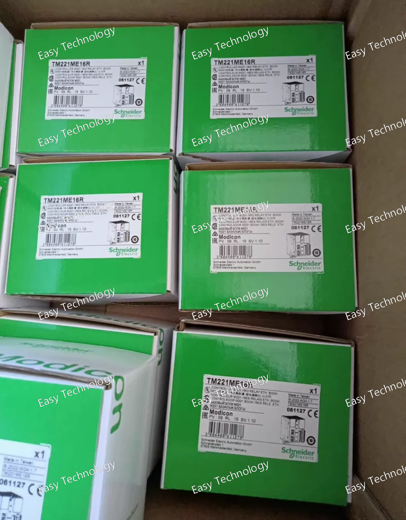 The TM221ME16RG is a logic controller from the Modicon M221 range (also known as the "Book" format) . It is a compact, programmable logic controller (PLC) designed for controlling simple machine applications, offering performance and requiring minimal installation space . This controller features 16 I/O (8 discrete inputs and 8 relay outputs), includes 2 analog inputs, and has an integrated Ethernet port for communication