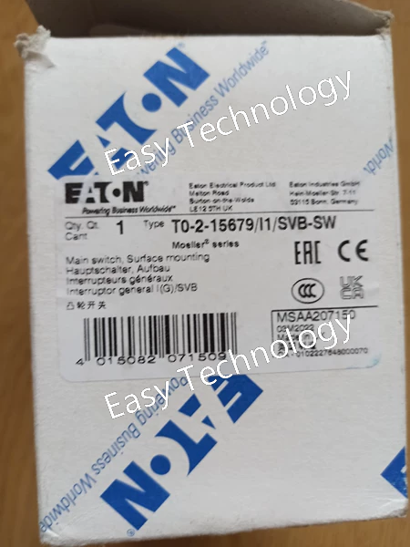 Technical Parameters Parameter Category Description / Value Brand & Series Eaton, P3 Series Model Number P3-63/EA/SVB/NL Rated Current (In) 63 A Number of Poles 3-Pole Rated Operational Voltage (Ue) 400/415V AC (Three-Phase) Rated Insulation Voltage (Ui) 500V AC Breaking Capacity (Icn) Typically 10 kA (Please confirm with specific catalog) Tripping Characteristic Type C (Instantaneous trip: 5-10 x In) Auxiliary Function EA - Alarm Switch (Signals trip condition via a separate contact) Terminal Type SVB - Shrouded Terminal Barrier (Finger Protection) Variant NL - Specific variant or regional designation (e.g., for Netherlands market or specific certification) Mounting Standard 35mm DIN Rail (EN 60715) Standards Compliance IEC/EN 60898-1