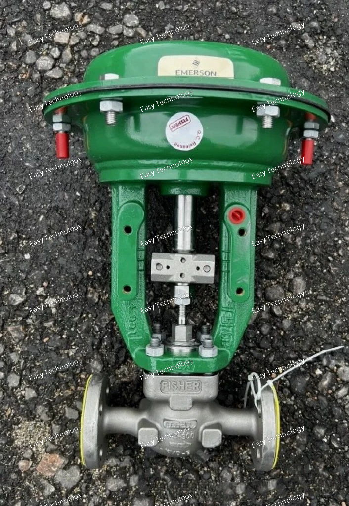Key Specifications / Parameters Valve Series: Fisher GX Control Valve & Actuator System Valve Body Size: DN 50 (nominal 50 mm) Pressure Rating: PN 40 (per EN standard) for body/flange construction. The GX series supports classes up to PN 40 in EN ratings. End Connections: Flanged, raised face (EN 1092‑1) for the PN 40 version; butt‑weld or socket weld end variants may also exist in certain builds Flow Characteristics: Equal‑percentage or linear trim selections available; special trims (micro‑flow, low‑flow, noise/cavitation control) optional Shut‑off Class: Standard metal‑to‑metal seat = Class IV; optional upgrades to Class V (metal seat) or Class VI (soft seat) Materials of Construction: Body/bonnet options include carbon steel, stainless steel and alloy materials; trim/seat options include metal‑hard faces or soft seats depending on service Service Capabilities: General service (liquid, vapor, gas), corrosive service, low‑flow applications, noise/cavitation mitigation; standard live‑loaded packing; optional extension bonnets for high temperature or cryogenic service Actuator/Accessory: GX actuator is a compact multi‑spring pneumatic type integrated with valve body; automated sizing so once body construction selected, actuator size is fixed; digital valve controller option (FIELDVUE) available Face‑to‑Face / Dimensions: Compliant with EN/ISA/ANSI standards for face‑to‑face dimension; for DN 50 size the internal diameter and wall thickness correspond to ~Ø60.3 mm × 2.9/3.2 mm for butt‑weld ends in some variants Flow direction: Typically “flow‑up” for standard trim but flow‑down and special trim variants are supported