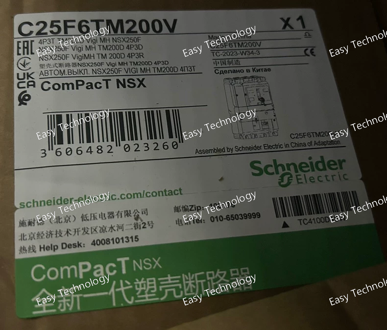 The Schneider Electric C25F6TM200 is a ComPacT NSX new generation molded case circuit breaker (MCCB) from the ComPacT NSX250F range . It is a 4-pole circuit breaker with 3 protected poles (3D) , meaning the neutral is unprotected. Designed for distribution applications, it features a fixed thermal-magnetic trip unit (TM-D) with a rating of 200 A