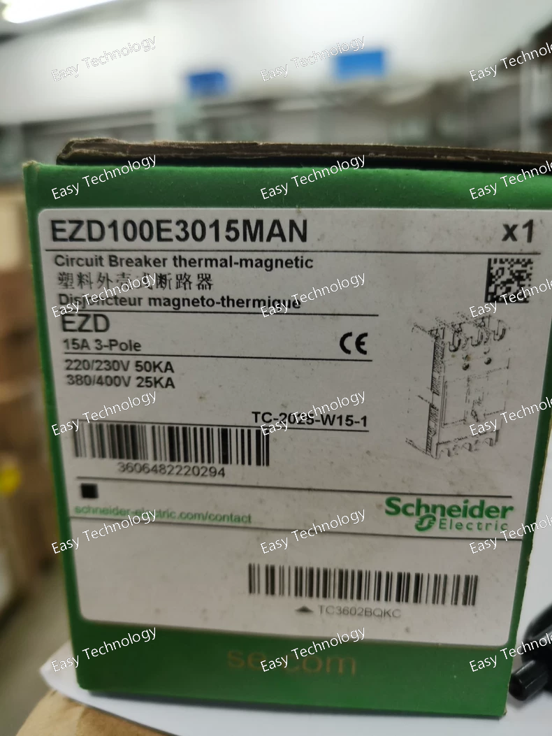 The Schneider Electric EZD100E3015MAN is an EZD series molded case circuit breaker (MCCB) designed for motor protection applications . It is a 3-pole (3P) circuit breaker with a frame size of 100A and a rated current of 15A