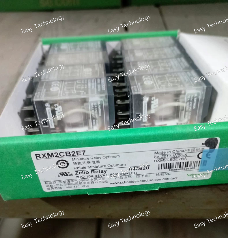 The Schneider Electric RXM2CB2E7 is a Zelio Relay series miniature plug-in relay from the RXM range . It features a 2CO (2 changeover) contact configuration with a contact rating of 10 A . This relay has a coil voltage of 48 V AC and includes a green LED indicator for coil energization status