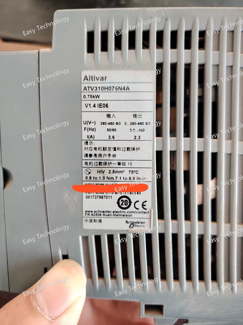 The Schneider Electric ATV310HU075N4A is a variable speed drive from the Altivar Machine ATV310 series . It is designed for three-phase asynchronous (induction) motors used in simple industrial machines and applications, such as conveyors, fans, pumps, and simple material handling equipment.