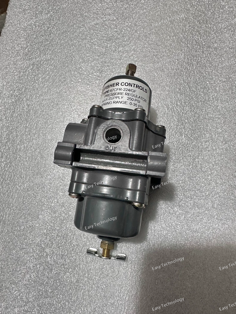 English Parameters / Specifications Model: 67CFR-224/GF Series: Fisher 67C Series (Instrument Supply Regulators) Body Material: Aluminum (standard for 67C) End Connections: ¼ in NPT (inlet & outlet) Maximum Inlet Pressure (Body Rating): 250 psig (≈17.2 bar) Outlet (regulated) Spring Range: 0–35 psig (≈0–2.4 bar) for the “224” variant Maximum Emergency Outlet Pressure (i.e. relief above set outlet): 50 psig (≈3.4 bar) above the outlet setting Filter: Integral internal filter (particulate filter element included) Internal Relief Valve: Yes — built-in soft-seat relief to relieve downstream pressure above setpoint Temperature Capability (depending on elastomer choice): Nitrile (NBR): –40 °F to +180 °F (≈ –40 °C to +82 °C) Fluoroelastomer (FKM): 0 °F to +300 °F (≈ –18 °C to +149 °C) Silicone (VMQ) with low-temperature bolting: –60 °F to +180 °F (≈ –51 °C to +82 °C) Media: Air or compatible gases (must be compatible with elastomer and body materials) Typical Applications: Instrument air supply regulation, panel-mounted regulators, pneumatic controllers, valve positioners Approximate Weight: For the 67C/67CFR aluminum body version ~1 lb (≈0.5 kg)