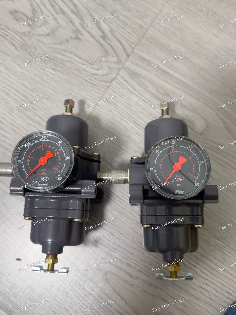 Parameters / Specifications Model: 67CFR-235 Series: Fisher 67C Series (Instrument Supply Regulators) Construction: Filtered regulator with internal relief (i.e., integral filter and soft-seat internal relief valve) Body material: Aluminum (standard for 67C series non-CS version) End connections: ¼ inch NPT (inlet & outlet) Maximum inlet (body rating) pressure: 250 psig (≈17.2 bar) for standard models. Maximum emergency outlet pressure (i.e., the relief valve will relieve when downstream exceeds setpoint by this margin): 50 psig (≈3.4 bar) above the outlet setting. Typical outlet (regulated) pressure spring range for the “235” variant: likely 0–35 psig (≈0–2.4 bar) (many order-codes in the 200-series use 0-35 psig) Filter: Integral, standard rating about 5 microns for polyethylene filter element Temperature capability (depending on elastomer / diaphragm / filter media): Nitrile (NBR): –40 °F to +180 °F (≈ –40 °C to +82 °C) Fluoroelastomer (FKM): 0 °F to +300 °F (≈ –18 °C to +149 °C) Silicone (VMQ diaphragm + low-temp bolting): –60 °F to +180 °F (≈ –51 °C to +82 °C) Media: Air or compatible gases (must confirm elastomer/filter compatibility for specific gas) Typical weight (for ¼ in NPT aluminum body version): about ~1 lb (≈0.5 kg) Typical applications: Instrument air supply regulators for pneumatic controllers, actuators, panel mount regulators, air chucks, spray guns, etc.