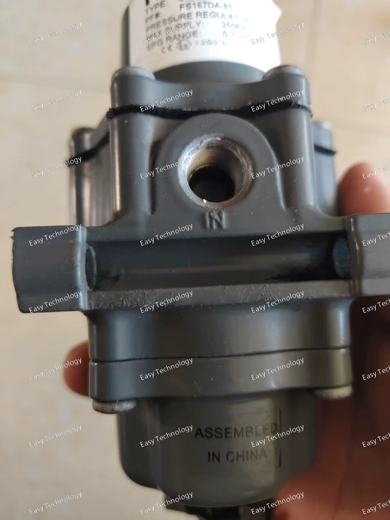Key Specifications Model: PF-67CFR-P265 Series: 67C Series (67CFR type) Maximum inlet (supply) pressure: up to 250 psi (≈17.2 bar) Outlet (regulated) pressure range: 0–35 psi (≈0–2.4 bar) Connection size: ¼-inch NPT (inlet and outlet) Body configuration: aluminum instrument regulator with internal filter & internal relief Media: Air or compatible gas Temperature/Material notes (general for 67C Series): With Nitrile (NBR) elastomers: operating range typically from –40 °F to 180 °F (≈ –40 °C to +82 °C) With Fluorocarbon (FKM) elastomers: higher temperature capability With Silicone (VMQ) elastomers: for low-temperature service (down to –60 °F / –51 °C) Accuracy / repeatability: In the 67C Series general manual, repeatability for NBR/VMQ elastomers is ~0.1 psi (≈7 mbar) and inlet sensitivity <0.2 psi change in outlet for 25 psi change in inlet (for NBR/VMQ elastomers) Internal relief: The 67CFR type includes built-in relief feature (soft-seat valve) to relieve downstream pressure if it rises above setpoint, thereby ensuring safety & stable regulation Filter: The “F” in 67CFR indicates integral filter—standard polyethylene filter with ~5 microns rating; optional glass or stainless steel filters available Weight: Approximate weight ~0.95 kg (for this particular part)