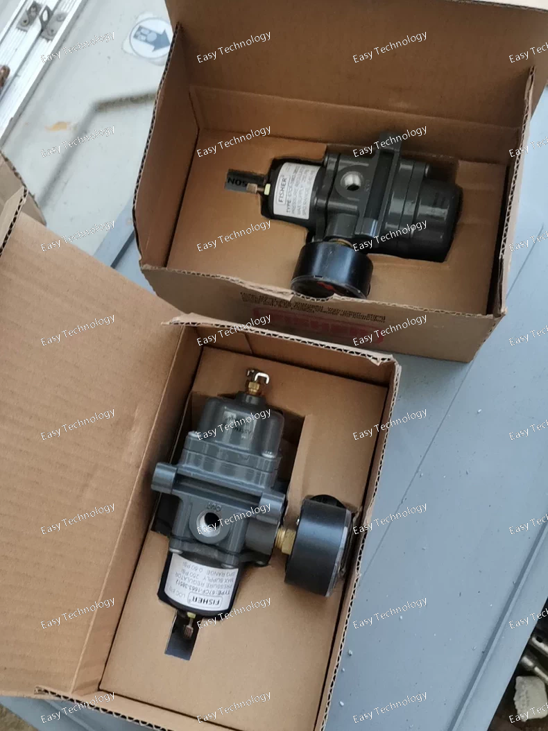 Parameters / Specifications Model: 67DFR‑24 Series: Fisher 67D Series Pressure-Reducing Regulators Construction Type: Filtered regulator with internal relief (integral filter + soft-seat relief) Body Material: Aluminum Connection Size / End Connections: ½ inch NPT (inlet & outlet) Maximum Inlet Pressure (Body Rating): 250 psig (≈17.2 bar) Maximum Emergency Outlet Pressure: Up to 150 psig (≈10.3 bar) over the outlet pressure setting Filter Element: Integral 5 micron polyethylene filter; optional glass-fiber or stainless steel filters available Temperature Capabilities (depending on elastomer/diaphragm): Nitrile (NBR): –40 °F to +180 °F (≈ –40 °C to +82 °C) Fluoroelastomer (FKM): 0 °F to +300 °F (≈ –18 °C to +149 °C) Silicone (VMQ) diaphragm with low-temperature bolting: –60 °F to +180 °F (≈ –51 °C to +82 °C) Approximate Weight: ~2.0 lb (≈0.9 kg) Media: Air or compatible gases, subject to material compatibility Typical Applications: Regulated supply for pneumatic instruments, pilot-operated devices, instrument air systems, and any application requiring both filtration and downstream pressure relief