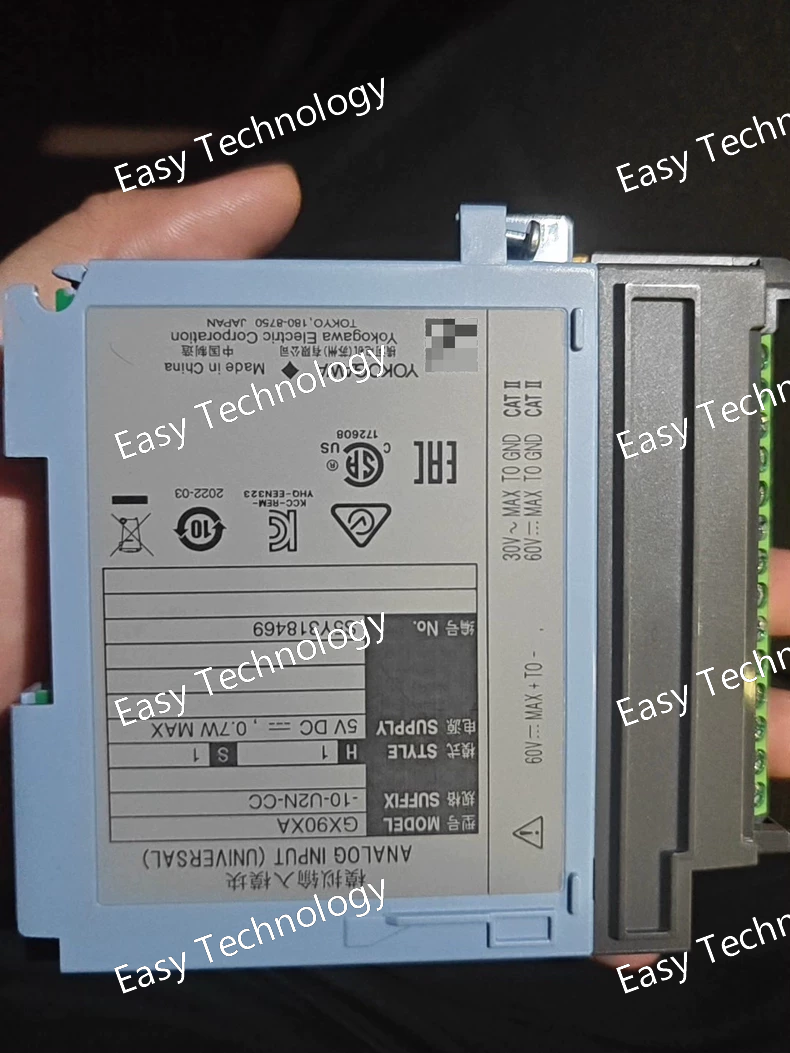 The GX90XA-10-U2N-CC is an analog input module in Yokogawa’s SMARTDAC+ / GM / GP series. It is a universal input, scanner type module (suffix “-U2”) with ten input channels. The module supports mixed input types including DC voltage, standard signals, thermocouples (TC), resistance temperature detectors (RTDs), digital inputs (voltage/contact), and DC current (when used with an external shunt resistor). It is used with GM or GP main units for data acquisition / recorder applications.