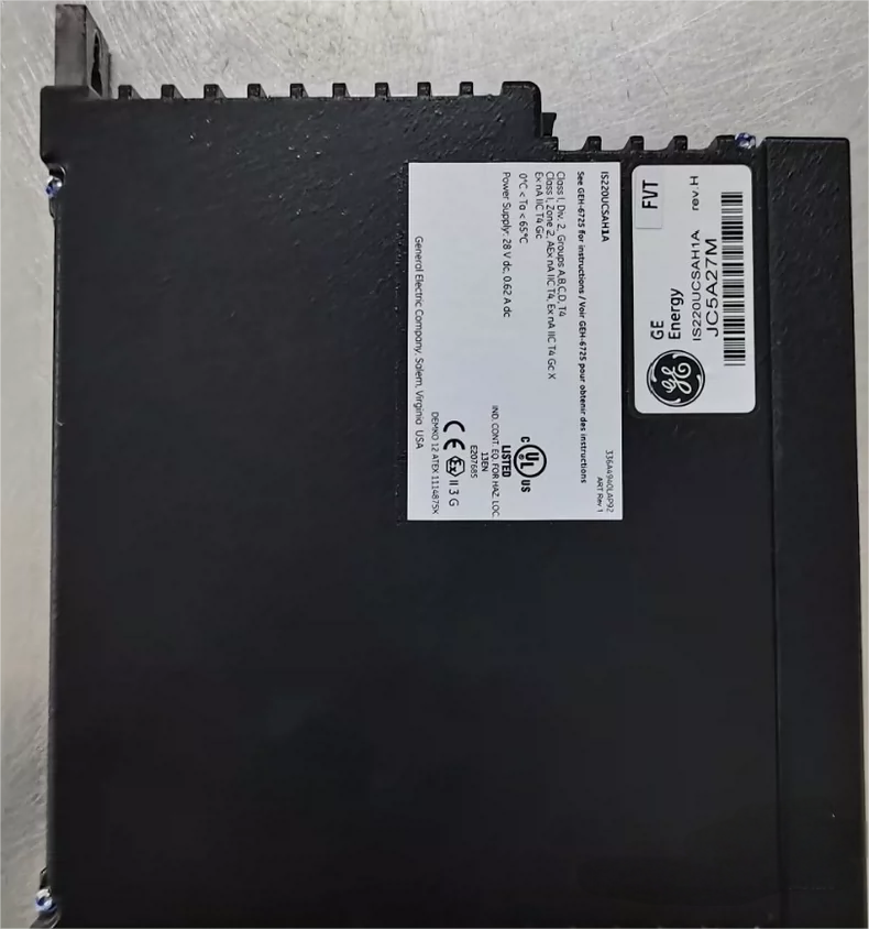 IS220UCSAH1A – GE Mark VIeS Safety I/O Pack Function: Safety-rated control module for critical shutdown/trip signals (SIL 2/SIL 3 certified). I/O: Configurable digital/analog safety inputs/outputs. Communication: Ethernet (SRTP protocol). Use: Turbine/plant protection systems (e.g., emergency stops). Power: 24V DC.