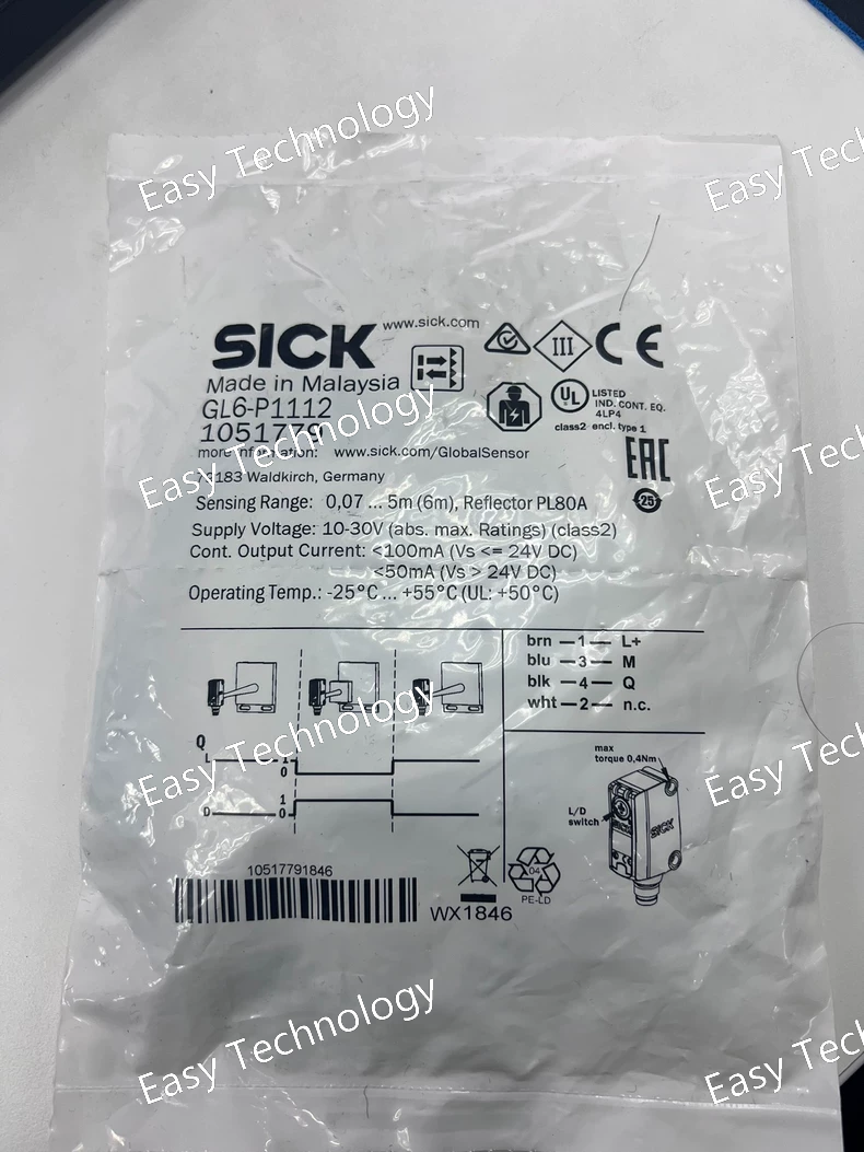The SICK GL6-P1112 is a miniature photoelectric proximity sensor designed for extremely compact spaces and high-precision applications. It belongs to SICK's extensive family of mini sensors, offering reliable performance in a very small form factor.