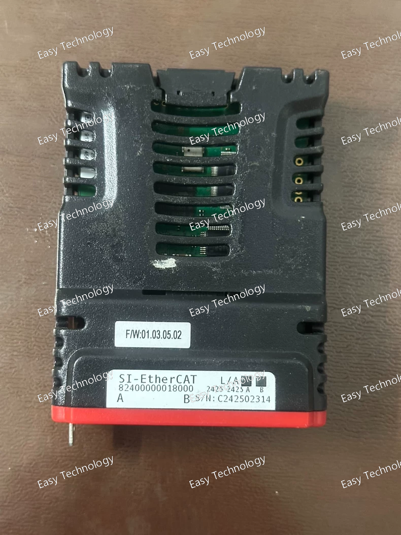 The Emerson SI-ETHERCAT (82400000018000) is a high-performance fieldbus communication option module from Control Techniques (part of Emerson/Nidec). It enables seamless integration of compatible AC and servo drives into an EtherCAT (Ethernet for Control Automation Technology) network. Designed for real-time, high-speed motion control applications, this module provides deterministic communication with minimal jitter, making it ideal for complex multi-axis systems. It supports the CANopen over EtherCAT (CoE) protocol, allowing full access to drive parameters, control words, and process data.