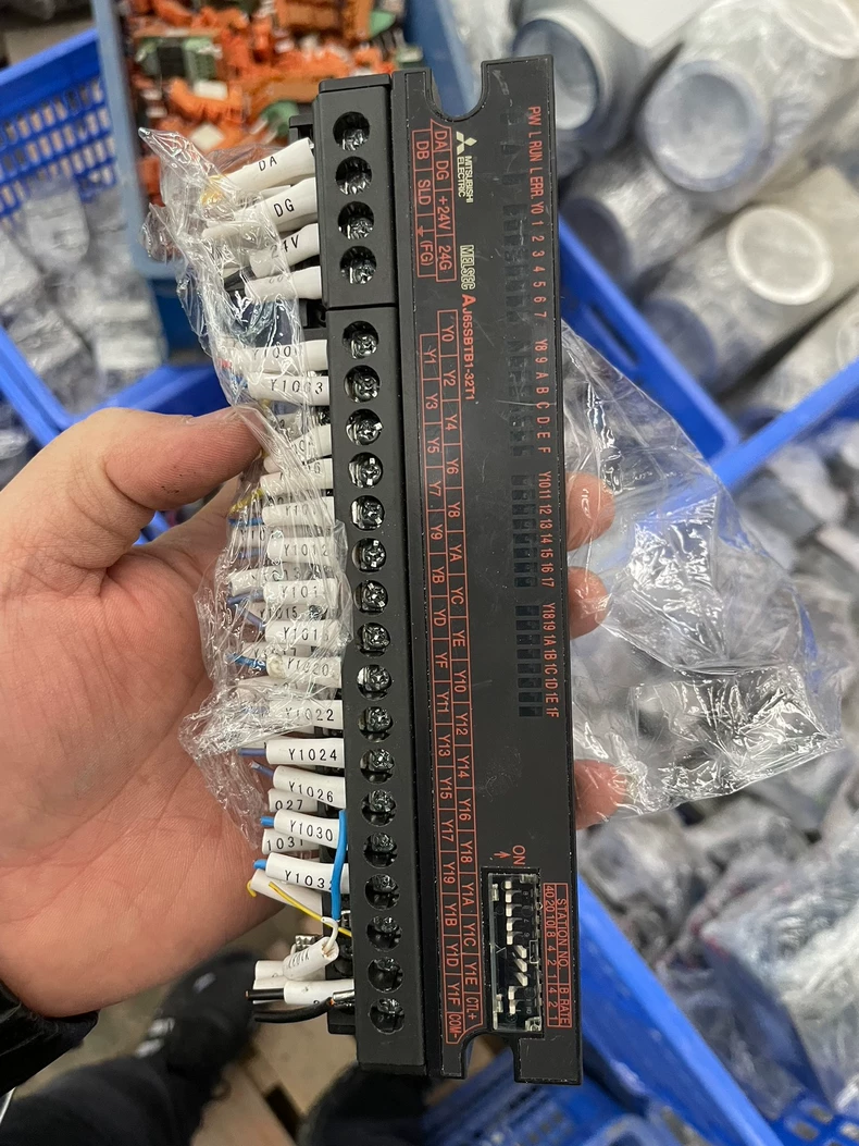 The AJ65SBTB1-32T1 is a 32-point transistor output (sink type) remote I/O module designed for Mitsubishi's CC-Link network. It enables distributed control in industrial automation systems by extending I/O points over a high-speed CC-Link fieldbus.