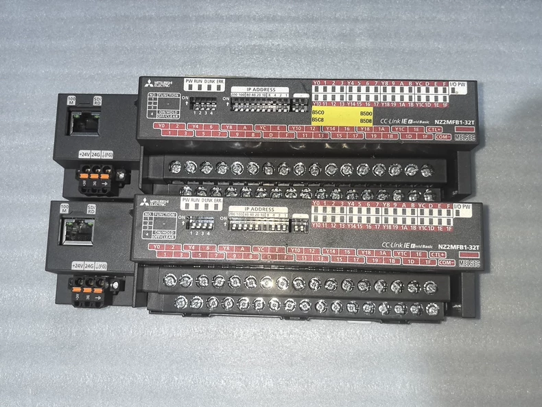 The NZ2MFB1-32DT is a high-density, 32-point digital I/O module for CC-Link IE Field Network systems, combining 16 inputs and 16 transistor outputs in a single compact unit. Designed for space-constrained applications, it enables efficient control and monitoring in modern automation systems.