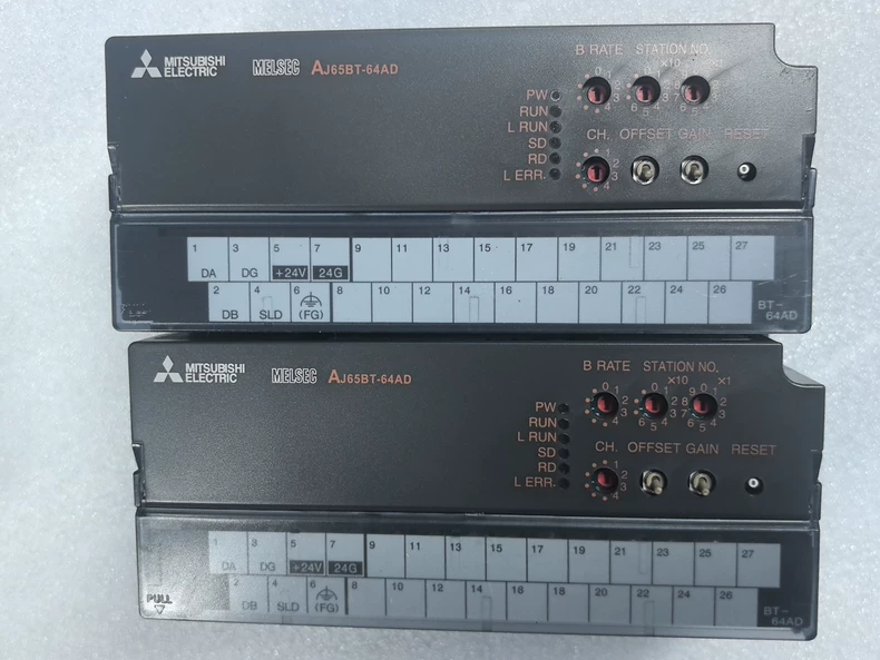 The AJ65BT-64AD is a CC-Link compatible 4-channel analog input module designed for Mitsubishi's MELSEC system. This module converts analog signals (voltage/current) from sensors into digital values for PLC processing via CC-Link network.