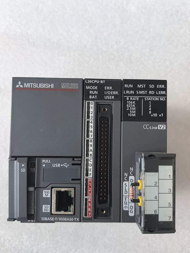 The L26CPU-BT is a high-performance CPU module from Mitsubishi's L Series PLC family, featuring built-in CC-Link IE Field Network connectivity. This controller combines sequence control, motion control, and network communication in a compact, energy-efficient design for advanced automation systems.