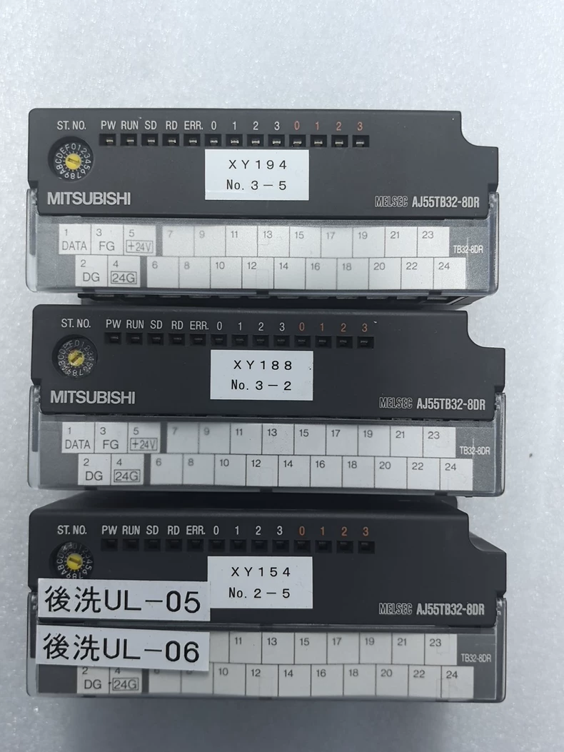 The AJ55TB32-8DT is a 32-point digital I/O module from Mitsubishi’s A/QnA series, designed for industrial automation and PLC systems. Unlike the AJ55TB32-8DR (which has 16 inputs + 16 outputs), this module features 32 transistor outputs (sink type), making it ideal for high-density output control applications.