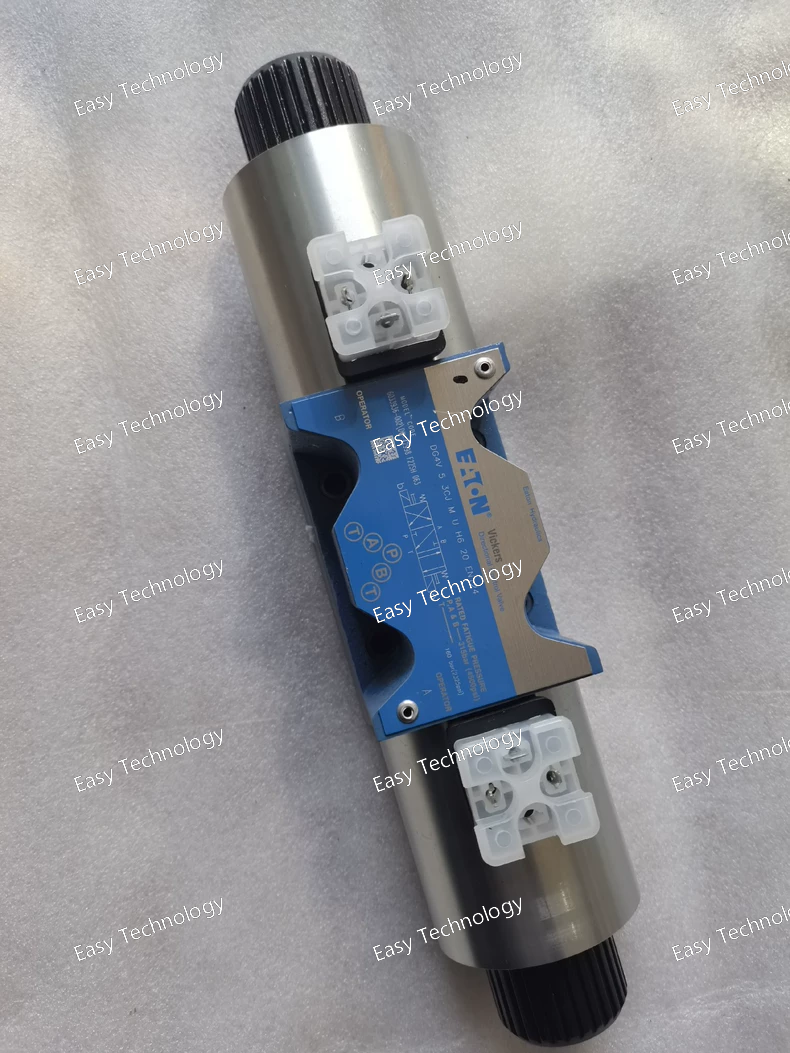 Technical Specifications Parameter Specification Notes / Interpretation Manufacturer / Series Eaton DG4V D05 / NG10 interface Model Number DG4V-5-3CJ-M-U-H6-20 Valve Type Directional Control Valve Number of Ways / Positions 4-Way, 3-Position Spring-Offset (Detented in 2 positions) Porting Size D05 (NG10) ISO 4401 standard Port Thread 3/4"-16 UNF Common for D05 size Actuation Type Solenoid Operated, Spring Return Single solenoid Solenoid Type Single Solenoid Wet-pin, DC version Spool Configuration -3CJ-: Tandem & Metered Float Pos1 (Spring): P→B & A→T & P→T Pos2 (Solenoid): P→A & B→T Spool Type -20: Industrial Spool Standard spool with critical center tolerances. Electrical Connection -H6: DIN 43650 Form A IP65-rated connector with manual override. Voltage Options Typically 12 VDC or 24 VDC Must be specified when ordering. The H6 connector is used for various voltages. Maximum Operating Pressure 350 bar (5,000 psi) Maximum Flow Rate ~ 38 L/min (10 US gpm) Dependent on pressure drop. Fluid Viscosity Range 10 to 380 cSt (50 to 1800 SUS) Fluid Type Mineral-based hydraulic oils, synthetics Compatible with standard hydraulic fluids. Temperature Range -20°C to +80°C (-4°F to +176°F) For hydraulic fluid. Seal Material Nitrile (NBR) Standard. Other options (e.g., FKM) may be available.