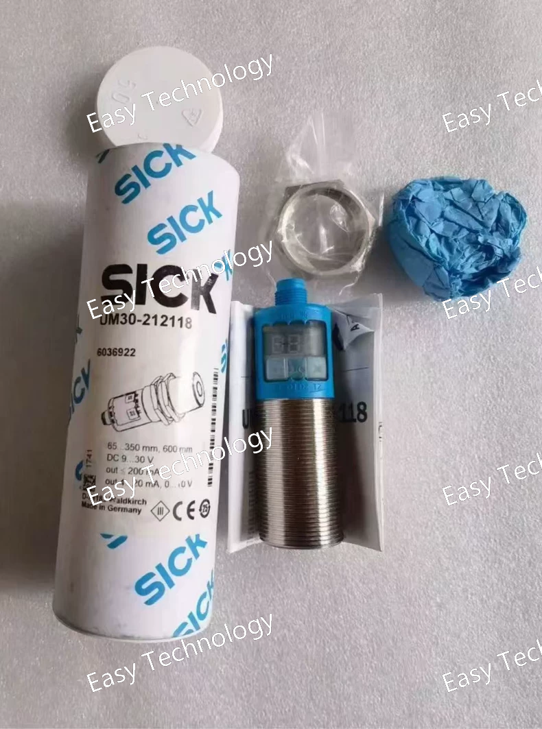 The SICK UM30-212118 is a universal-purpose ultrasonic sensor from the UM30 series. It is designed for reliable, medium-range object detection and distance measurement in challenging industrial environments where factors like target color, surface texture, transparency, or environmental contaminants like dust, steam, or mist compromise the performance of photoelectric sensors.