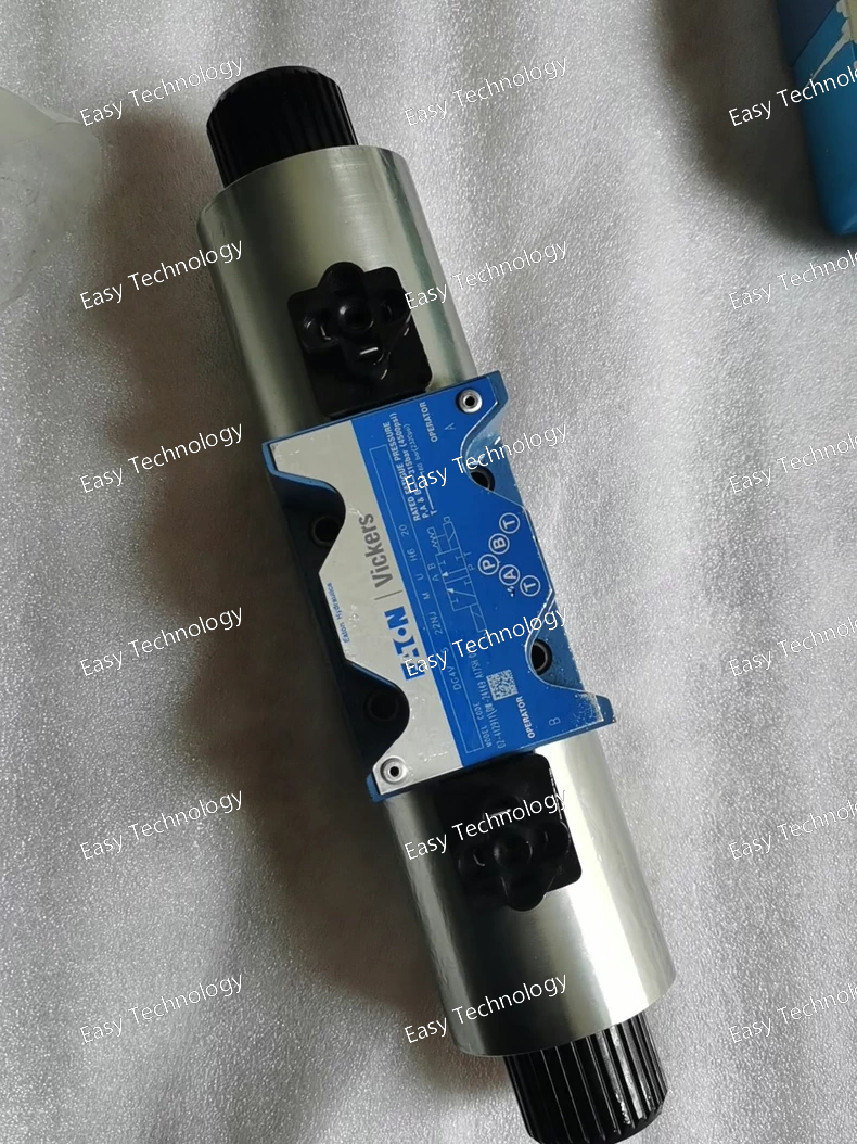 Technical Specifications Brand / Series: Vickers by Eaton — DG4V‑5, 20 Series Model Code: DG4V‑5-0CJ-VM-U-H6-20 Valve Type: Solenoid-operated directional control valve (4-way / 3-way depending on port/spool configuration) Mounting / Interface: Subplate / manifold mount — ISO 4401‑05 (D05 / NG10) Actuation: Solenoid operated Electrical Connection: ISO 4400 (DIN 43650) connector Coil Rating / Type: 24 V DC Maximum Flow Rate: Up to 32 US gpm (≈ 120 L/min) Maximum Operating Pressure (P, A, B ports): 315 bar (≈ 4500 psi) Tank (T) Port Pressure Rating: 160 bar (≈ 2320 psi) Seal Material (standard): Viton Fluid Compatibility: Petroleum-based hydraulic oils Fluid Cleanliness Requirement: 19/17/14 micron code Spool Type / Center Condition: Spool “0CJ”, spring-centered Stage: Single-stage directional valve Manual Override: Plain (manual override at solenoid ends) Valve Mount Type: Subplate / manifold mounted (ISO / NFPA standard) Operating Temperature Range: –20 °C to +70 °C (–4 °F to +158 °F)