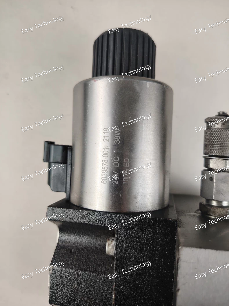 Technical Specifications Valve Type: Pilot-operated, solenoid-controlled directional control valve (two-stage) Series: DG5S4-04 (subplate / manifold mount; ISO 4401 Size 07) Actuation / Operation: Pilot operated, solenoid controlled Coil / Electrical Connection: 24 V DC coil, ISO 4400 (DIN 43650) connector Mounting Interface: ISO 4401-07 (subplate / manifold mount) Flow Capacity: Up to 227 L/min (≈ 60 US gpm) Maximum Operating Pressure: 210 bar (≈ 3000 psi) Body Material: Gray Iron, solid cast with cored passages Seal Material: Standard Buna-N (nitrile) Spool Type / Spool Arrangement: Two-stage spool, spring-centered spool arrangement Stage: Two-stage directional valve Fluid Compatibility: Petroleum-based hydraulic oils Fluid Cleanliness Requirement: 19/17/14 (micron) Operating Temperature Range: –20 °C to +70 °C (approx. –4°F to +158°F) Mount Type: Subplate / manifold mount Manual Override: Plain (no special override) Tank / Return Port Rating: same as pressure rating (210 bar / 3000 psi) Pilot Pressure Type: Internal pilot supply External Features: Standard performance (no special features like explosion-proof, spool monitoring, or damping — unless configured differently)
