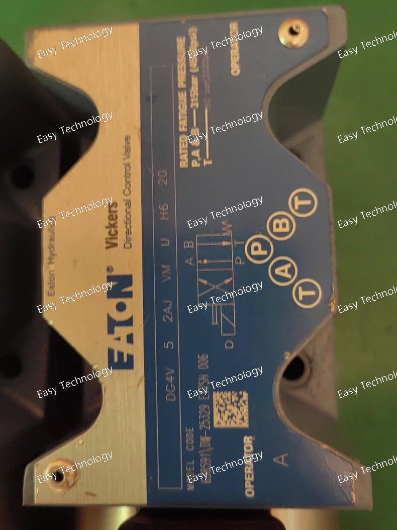 Parameter Description / Value Notes Product Line Eaton DG4V Second Generation Valve Type Two-Stage Proportional Directional Valve 4-way, 3-position Pilot Stage Size NG05 (CETOP 5 / NFPA D02) Main Valve Size NG10 (35 Series Body, CETOP 7/ NFPA D05 equivalent flow) The "35" indicates a larger main valve body for higher flows. Maximum Operating Pressure 350 bar (5,075 psi) Maximum Flow Rate Approx. 150 - 200 L/min (40 - 53 US gpm) Solenoid Type Proportional Solenoid (on pilot valve) Wet armature design. Feedback Type VM LVDT (Linear Variable Differential Transformer) on the main spool for closed-loop position control. Electrical Connector U (DIN 43650 Form A, 4-pin) Standard industrial connector. Integrated Electronics H6 On-board amplifier card designed for LVDT feedback valves. Input Signal ±10 VDC or 4-20 mA Selectable via internal dip-switches. Supply Voltage (to amplifier) 12-30 VDC For the H6 amplifier. IP Rating IP65 (with connector properly installed) Dust-tight and protected against water jets. Hydraulic Fluid Mineral-based hydraulic oil to ISO 11158 Fluid Viscosity Range 10 to 400 cSt (50 to 2000 SUS) Operating Temperature Range -20°C to +70°C (-4°F to +158°F)