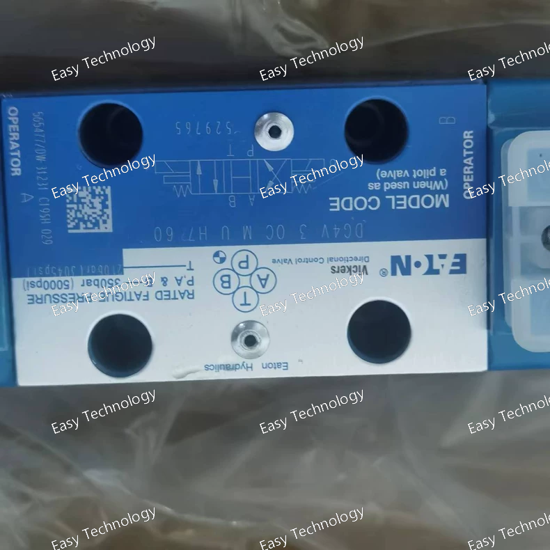 Parameter Description / Value Notes Product Line Eaton DG4V Second Generation Type Proportional Directional Control Valve 4-way, 3-position, Single-Stage Porting Size NG05 (CETOP 5 / NFPA D02) Standard subplate interface Maximum Operating Pressure 350 bar (5,075 psi) Maximum Flow Rate Approx. 40 - 60 L/min (10.5 - 16 US gpm) *Dependent on spool and pressure drop (e.g., Δp = 10 bar).* Spool Type 6CJ "6" denotes a high-performance spool series with LVDT feedback. "CJ" indicates the specific spool metering characteristic (e.g., linear or modified linear). Center Position M (Closed Center / All Ports Blocked) In the center (neutral) position, all work ports (A, B) and the pressure port (P) are blocked, and the tank port (T) is open. This holds an actuator in place. Solenoid Type Proportional Solenoid Wet armature design Feedback Type Integrated LVDT The spool has a built-in LVDT for closed-loop position control. (This is implied by the "6" series and the H6 amplifier). Electrical Connector U (DIN 43650 Form A, 4-pin) Standard industrial connector Integrated Electronics H6 On-board amplifier card designed for LVDT feedback valves. Input Signal ±10 VDC or 4-20 mA Selectable via internal dip-switches Supply Voltage (to amplifier) 12-30 VDC For the H6 amplifier IP Rating IP65 (with connector properly installed) Dust-tight and protected against water jets Hydraulic Fluid Mineral-based hydraulic oil to ISO 11158 Fluid Viscosity Range 10 to 400 cSt (50 to 2000 SUS) Operating Temperature Range -20°C to +70°C (-4°F to +158°F)
