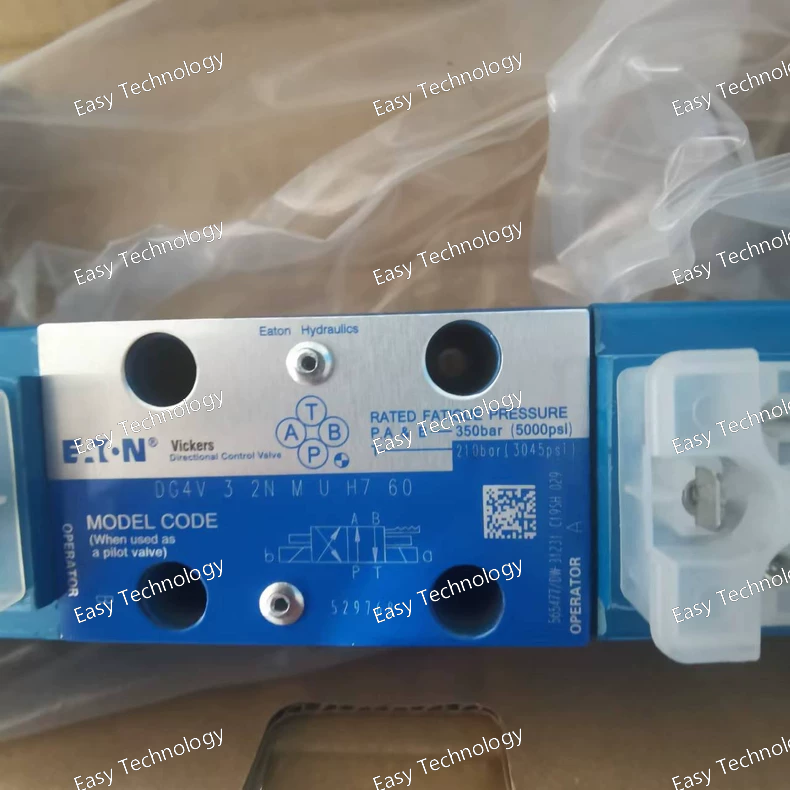 Parameter Description / Value Notes Product Line Eaton DG4V Second Generation Type Proportional Directional Control Valve 4-way, 3-position, Single-Stage Porting Size NG05 (CETOP 5 / NFPA D02) Standard subplate interface Maximum Operating Pressure 350 bar (5,075 psi) Maximum Flow Rate Approx. 40 - 60 L/min (10.5 - 16 US gpm) *Dependent on spool and pressure drop (e.g., Δp = 10 bar).* Spool Type 2CJ "2" denotes a specific high-performance spool series with LVDT feedback. "CJ" indicates a linear or modified linear flow characteristic. Center Position M (Closed Center / All Ports Blocked) In the center (neutral) position, all work ports (A, B) and the pressure port (P) are blocked, and the tank port (T) is open. This holds an actuator in place. Solenoid Type Proportional Solenoid Wet armature design Feedback Type Integrated LVDT The spool has a built-in LVDT for closed-loop position control. Electrical Connector U (DIN 43650 Form A, 4-pin) Standard industrial connector Integrated Electronics H6 On-board amplifier card designed for LVDT feedback valves. Input Signal ±10 VDC or 4-20 mA Selectable via internal dip-switches Supply Voltage (to amplifier) 12-30 VDC For the H6 amplifier IP Rating IP65 (with connector properly installed) Dust-tight and protected against water jets Hydraulic Fluid Mineral-based hydraulic oil to ISO 11158 Fluid Viscosity Range 10 to 400 cSt (50 to 2000 SUS) Operating Temperature Range -20°C to +70°C (-4°F to +158°F)