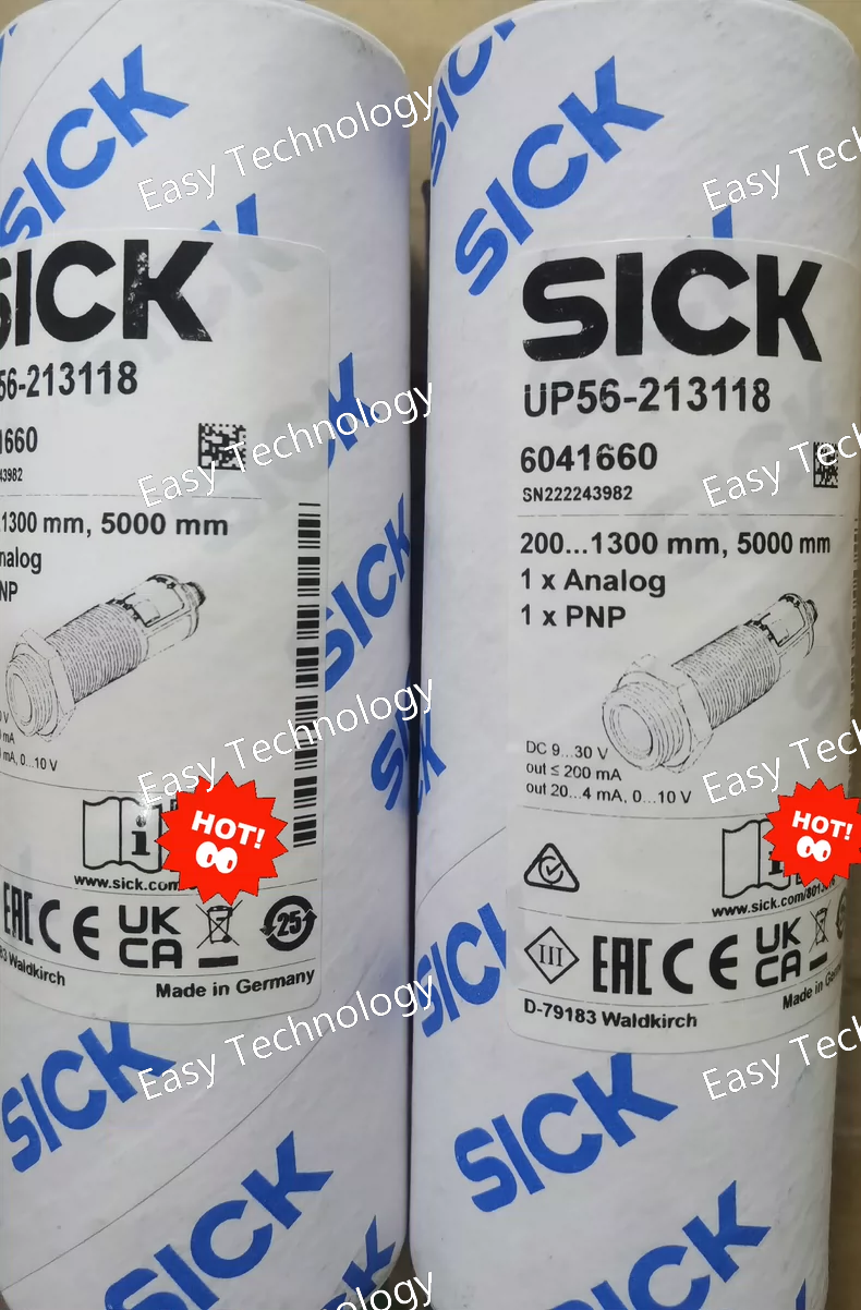 The SICK UP56-213118 is a high-performance, self-contained ultrasonic sensor designed for long-range object detection and distance measurement. It belongs to the UP series, which is known for its strong sonic cone and excellent resistance to environmental interference. This specific model features a dual discrete digital output configuration (one PNP and one NPN), providing maximum flexibility for interfacing with different types of PLCs and control systems. Its extended sensing range makes it suitable for applications where other sensors fall short.