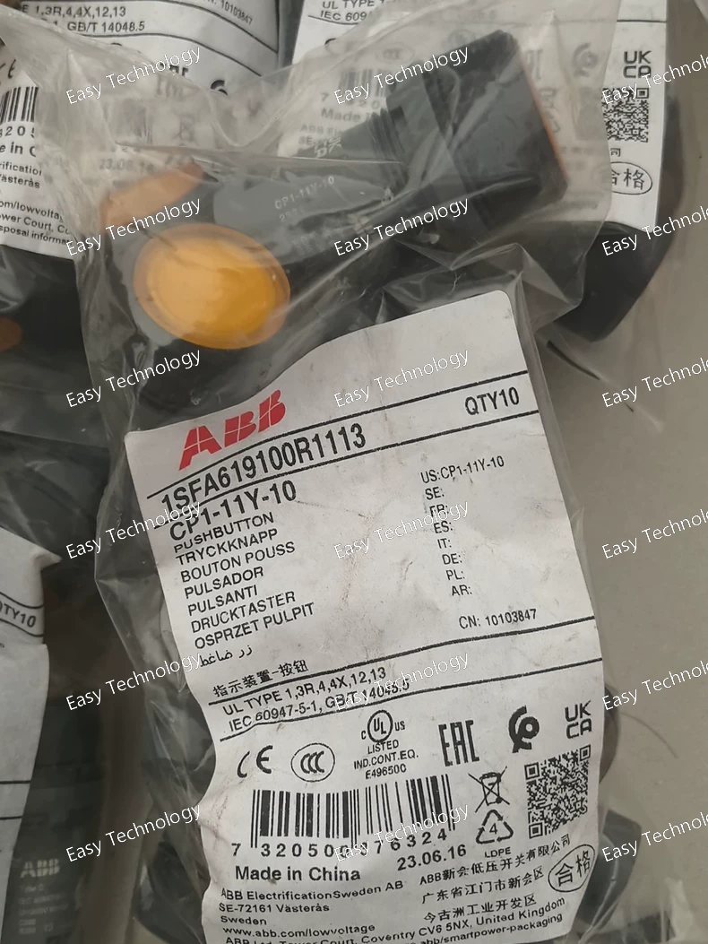 Technical Parameters Specification Details Product Type Compact Illuminated Pushbutton Model / Part Number CP1‑11Y‑10 Brand ABB Actuator Style Flush momentary pushbutton Illumination Yes – LED (24 V AC/DC) Button Color Yellow Bezel / Housing Black plastic Contact Configuration 1 Normally Open (1NO) Rated Operational Voltage 24 V AC/DC for illumination and control Rated Insulation Voltage (Ui) 300 V Rated Impulse Withstand Voltage (Uimp) 6 kV Contact Rating (Typical) ~1 A @ 240 V AC, 0.3 A @ 24 V DC (control circuit limits) Rated Frequency 50/60 Hz Mechanical Life ~0.5 million operations Connection Type Screw terminals / screw clamp Degree of Front Protection IP66 / IP67 / IP69K Terminal Protection IP20 Panel Cutout Size Standard 22 mm diameter Ambient Operating Temp. −25 °C to +70 °C Storage Temp. −40 °C to +85 °C Standards Compliance IEC/EN pilot device standards (e.g., IEC 60947‑5‑1 / IEC 60947‑5‑5) Typical Applications Control panels, machine start/stop stations, indicator circuits, safety and automation interfaces