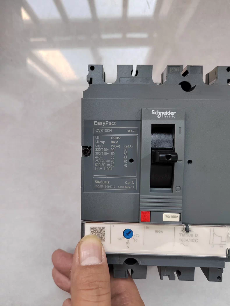 The Schneider Electric CVS100N 3P 100A is a three-pole circuit breaker designed for overload and short-circuit protection in three-phase electrical distribution systems.