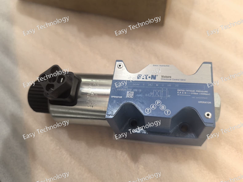 Parameter Specification Manufacturer / Series Eaton / DG4V-5 Part Number / Model DG4V-5-2AJ-M-U-H6-20 Valve Type Solenoid Operated, Directional Control Valve Configuration 5-Port, 4-Way (5/4) Actuation Type Single Solenoid, Spring Offset Spool Type 2AJ (This is a specific spool configuration. Refer to Eaton's datasheet for exact flow path characteristics). Mounting Style Subplate Mounting (ISO 4401-05 (CETOP 5) interface) Electrical Connection DIN 43650 Form A (with LED indicator and manual override) Coil Voltage (Example) Note: The "-H6-20" typically specifies the coil. H6 often denotes 12V DC. This must be confirmed with the supplier or datasheet as other voltages are available. Protection Class IP65 (Dust tight and protected against water jets) Performance Nominal Flow Rate 20 L/min (5 US GPM) Maximum Operating Pressure 350 bar (5,000 psi) Maximum Peak Pressure 400 bar (6,000 psi) Solenoid Characteristics Solenoid Type Wet Pin AC or DC (specific to order code) Duty Cycle Continuous (Class F insulation system) Hydraulic Fluid Mineral oil-based hydraulic fluids to ISO 11158 (e.g., HV46) Fluid Temperature Range -30 °C to +80 °C (-22 °F to +176 °F) Fluid Viscosity Range 10 to 500 cSt (50 SSU to 2300 SSU) Filtration Level Recommended: 25 µm absolute or better, per ISO 4406 code 18/16/13 Weight (Approx.) ~2.5 kg (5.5 lbs) - (varies with coil and options) Materials Housing Steel Spool Hardened Steel Seals Nitrile (Buna-N) - Standard