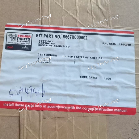 Specifications / Parameters Model: R667X000402 Kit Type: Actuator repair kit (gaskets, o‑rings, seals) Compatible Actuator Sizes: Size 34 and Size 40 of the Fisher Type 667 actuator series Components Included: O‑rings + gasket/s (specific count depends on version) Recommended Application: Use when inspecting or rebuilding the actuator to ensure sealed performance Weight: approx. 0.15 lb (≈0.07 kg) in one listing Category: Gasket/repair kit for machine parts, actuator refurbishment